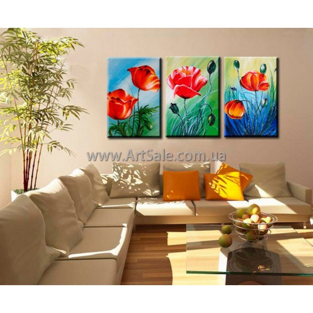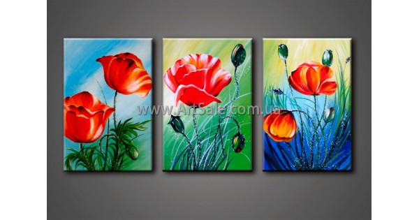 Модульная Картина из трех частей Маки. Ручная работа. Холст. Масло, текстурные пасты, мастихины. Общий Размер модульной картины: 120х80см Размер каждого модуля картины: 40x80+40x80+40x80 100% ручная работа. Работа выполнена ведущими художниками "ArtSale™" . Бесплатная доста..